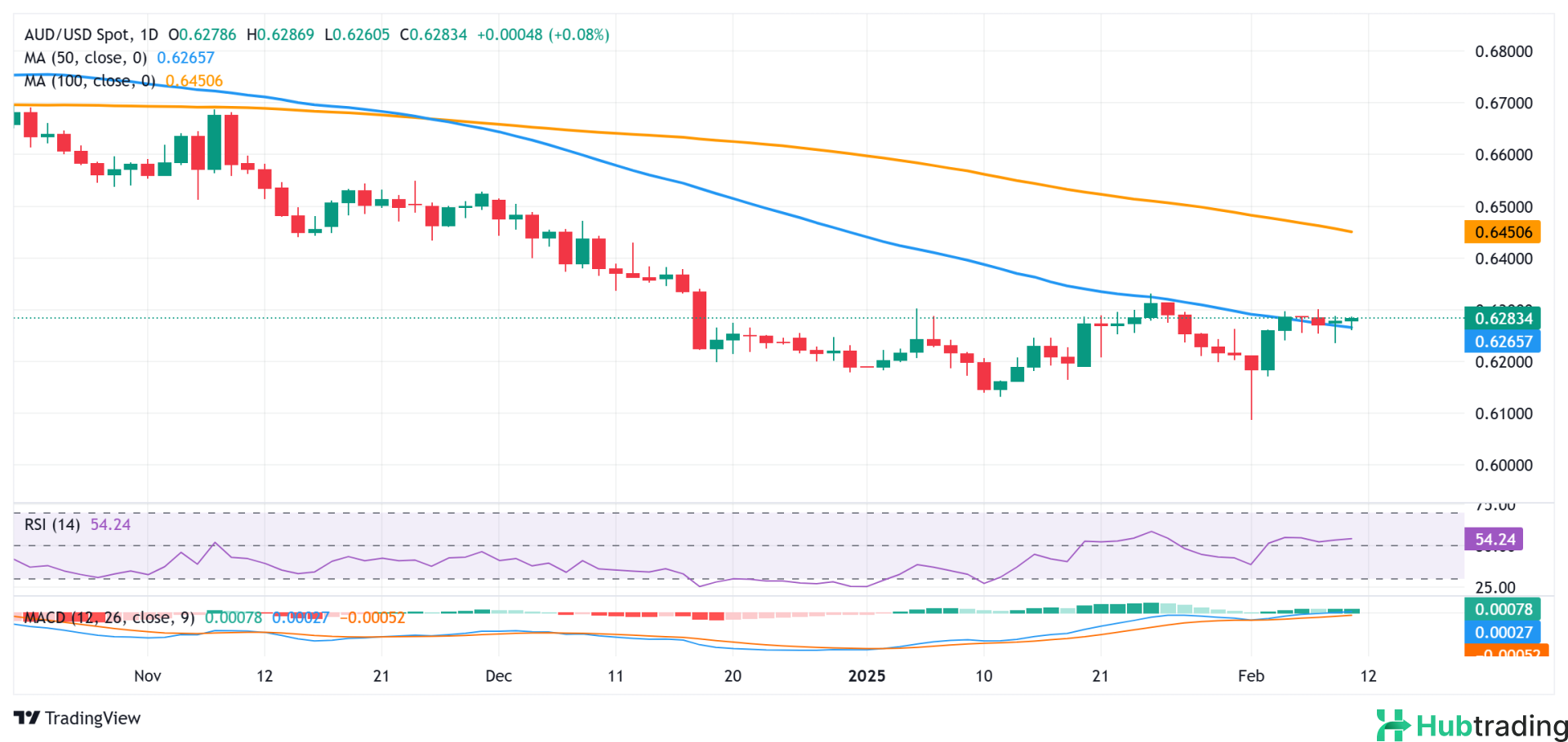 While technical indicators favor a potential upside, fundamental factors such as RBA rate cut expectations and trade tensions continue to pressure the Australian Dollar. A decisive break above 0.6300 is needed for bulls to gain confidence, while a move below 0.6235 could trigger further losses.