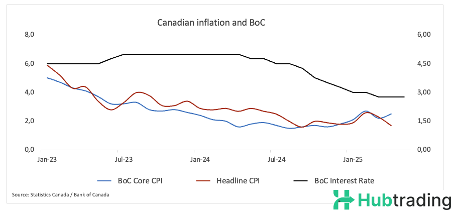 Should the inflation figures exceed expectations, it could be viewed as early confirmation that U.S. tariffs are starting to exert upward pressure on prices. In that case, the BoC may adopt a more cautious policy stance, which could support the Canadian Dollar (CAD) in the short term. However, paradoxically, stronger inflation could also stoke fears about economic strain, potentially undermining the currency and complicating the rate-cut outlook.