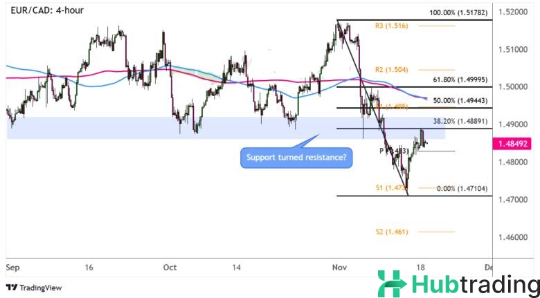 European markets responded bearishly to the recent U.S. elections, dragging EUR/CAD below the strong 1.4900 psychological support zone. However, this week’s return of risk-off sentiment has pressured the higher-yielding Canadian dollar, enabling the pair to climb back toward a key area of interest.