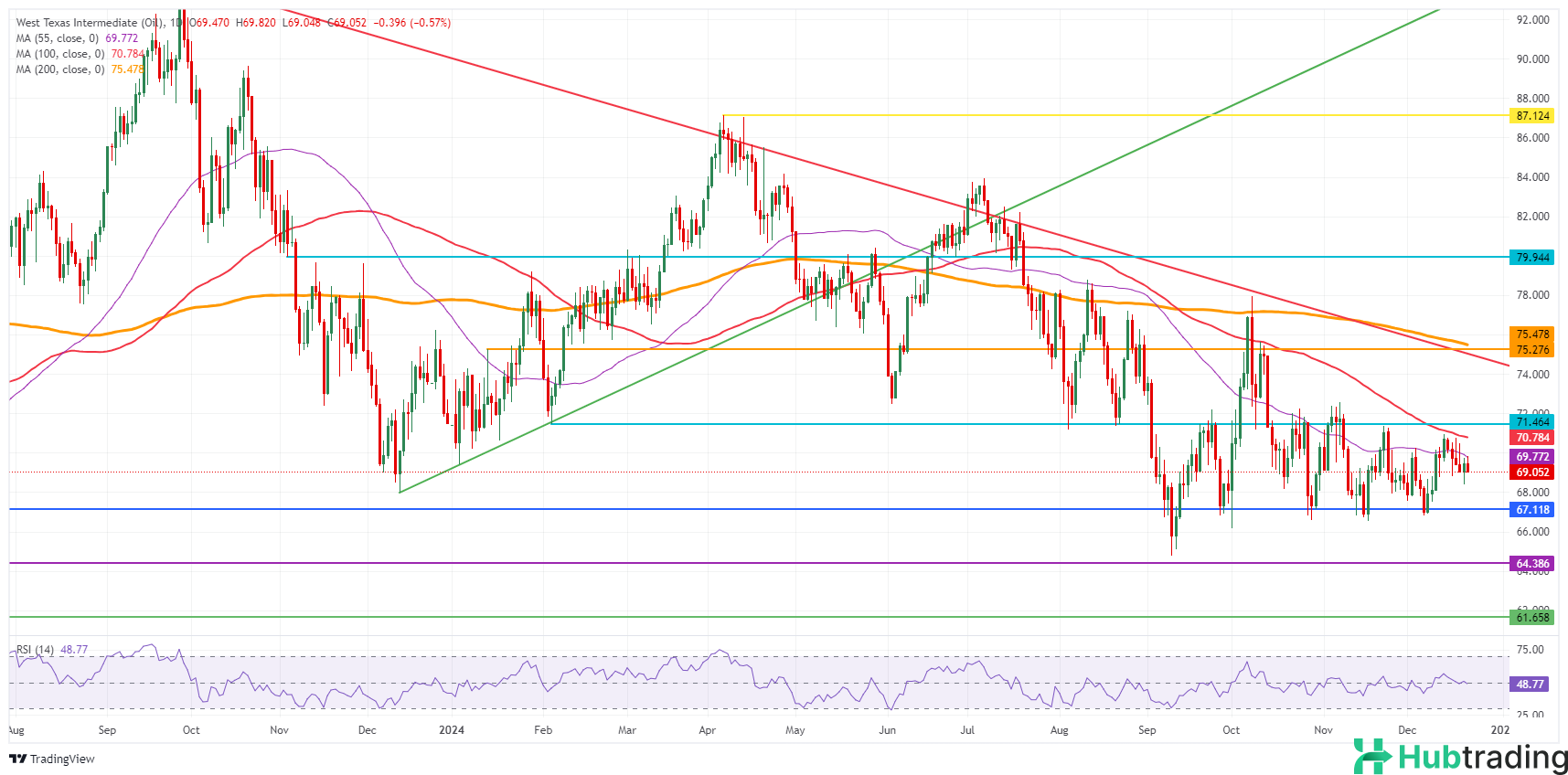 As of this writing, WTI Crude trades at $69.25, while Brent Crude is priced at $72.41.