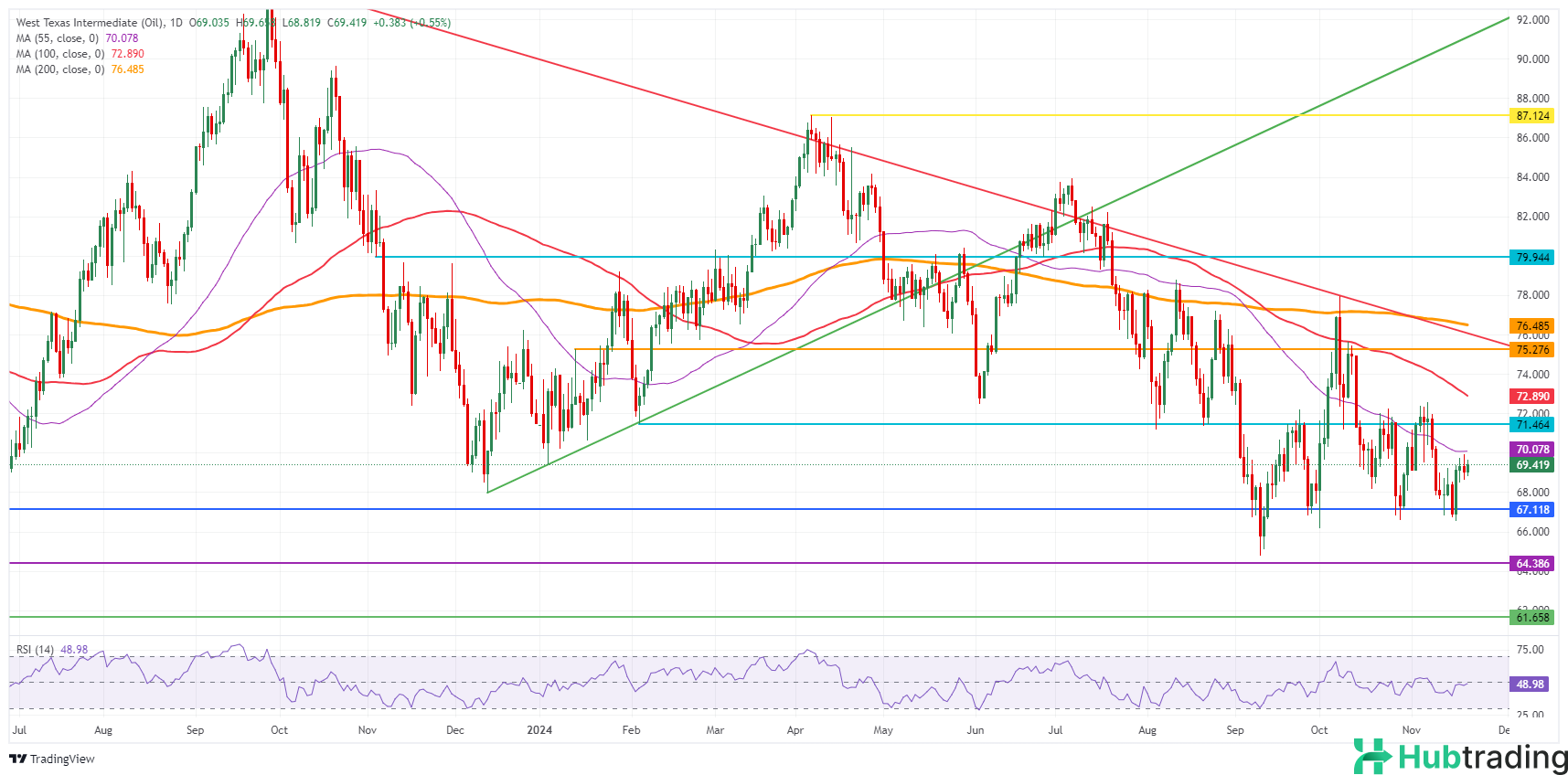 Crude Oil prices are surging above $70 following headlines that the International Criminal Court (ICC) in The Hague has issued an arrest warrant for Israeli Prime Minister Benjamin Netanyahu. On Wednesday, oil attempted to break the $70 level but failed after reports emerged that Ukraine and Russia might be open to talks to resolve the ongoing conflict. Any developments hinting at such negotiations could trigger volatile reactions in oil prices.