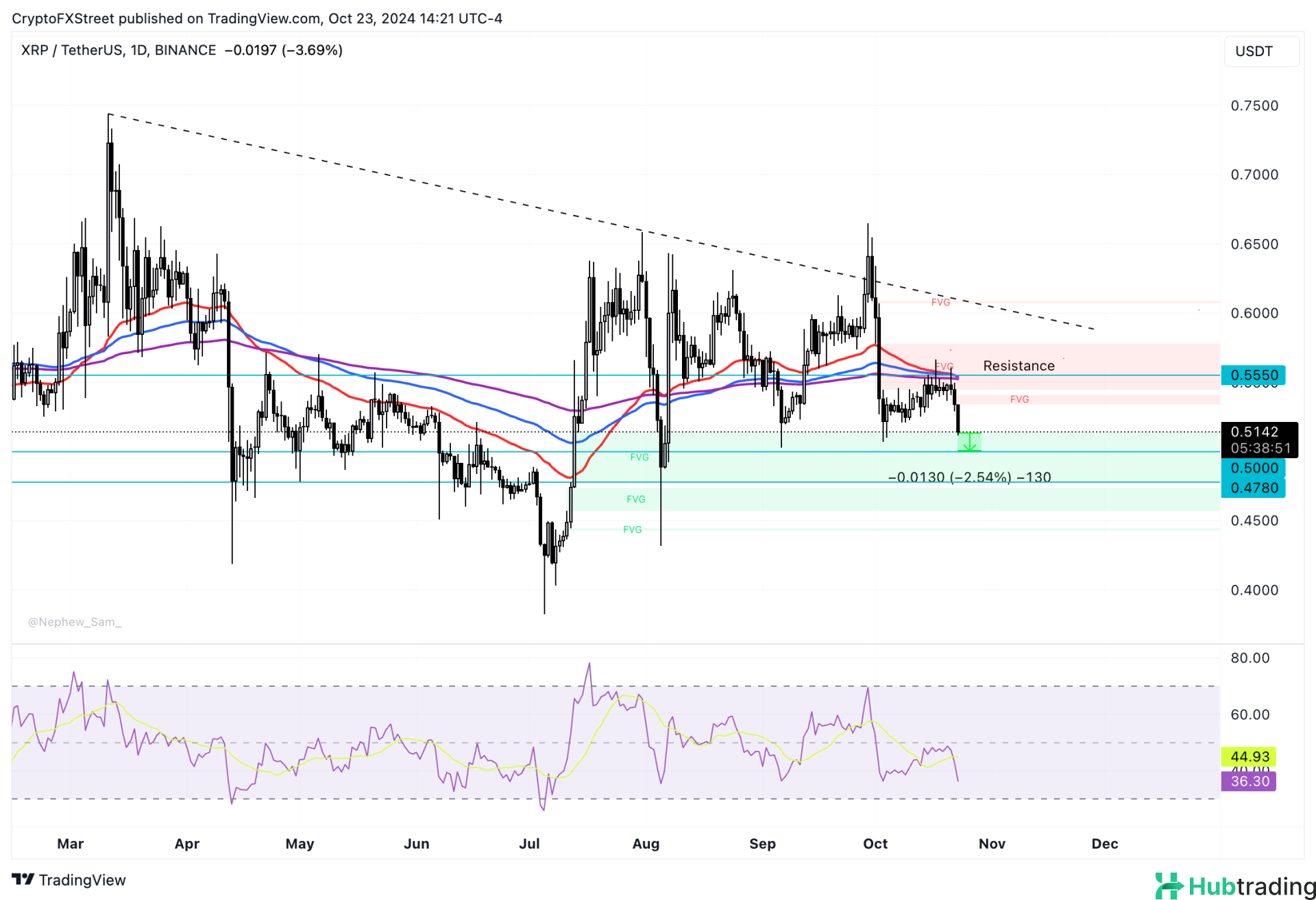 Ripple’s XRP shows signs of consolidation after recent volatility, hovering around a key support level. The current price action suggests that XRP could either make a decisive move toward its next resistance at $0.55 or risk a breakdown if support at $0.48 fails to hold. Traders should watch for a potential breakout above $0.55, which could trigger further gains. However, a dip below $0.48 could lead to additional downward pressure, bringing the next support at $0.45 into play.