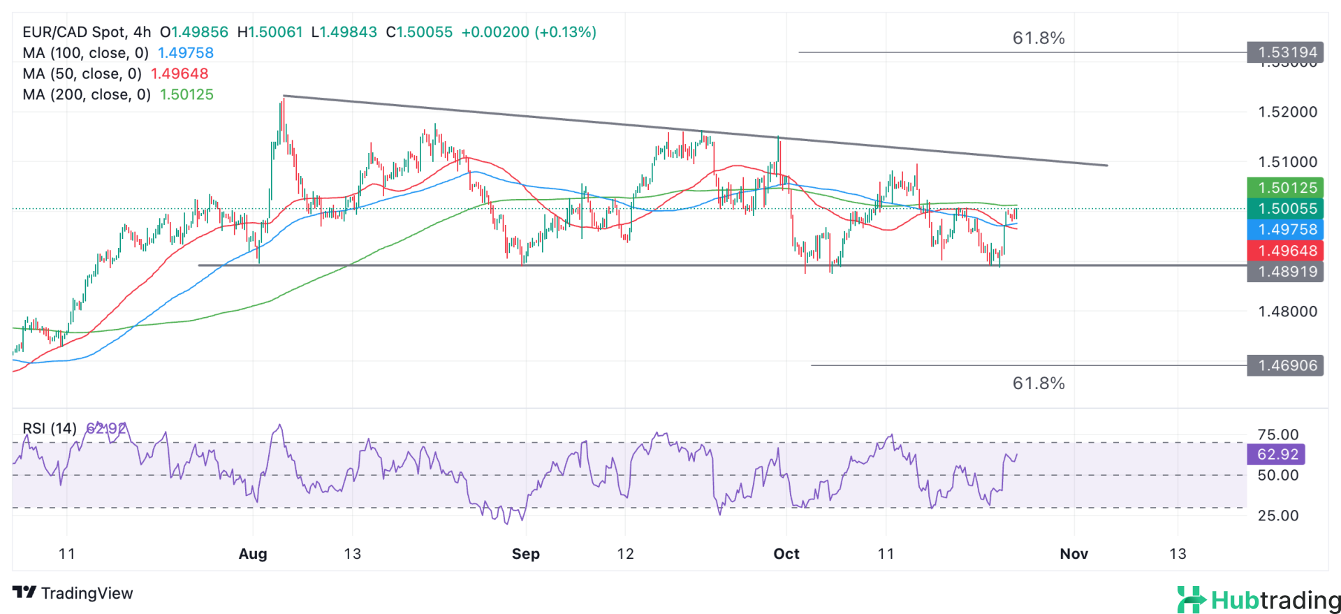 The ECB’s Chief Economist, Martin Lane, indicated that wage inflation might stay elevated into the latter half of 2024, which could complicate significant rate cuts before 2025. Should this be the case, the ECB may opt for a more conservative 25 bps cut in December, potentially benefiting EUR/CAD.