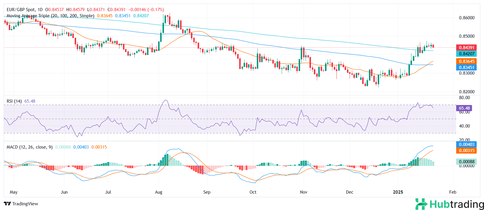 The EUR/GBP pair declined on Thursday, slipping to 0.8445 as it edges closer to the critical 200-day Simple Moving Average (SMA), situated near 0.8420.