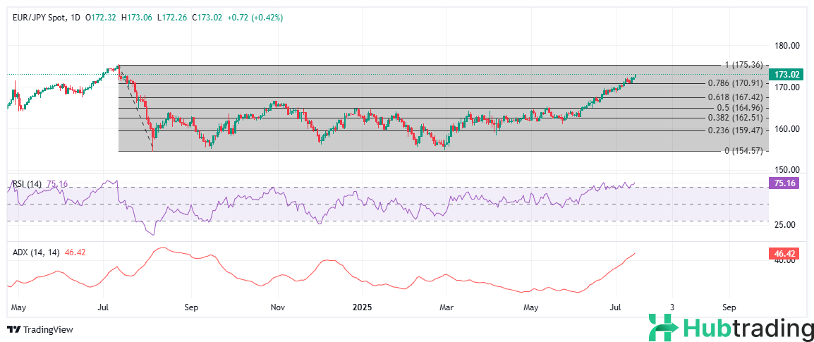 EUR/JPY reaches a new yearly high, trading firmly above the 173.00 level during the U.S. session.