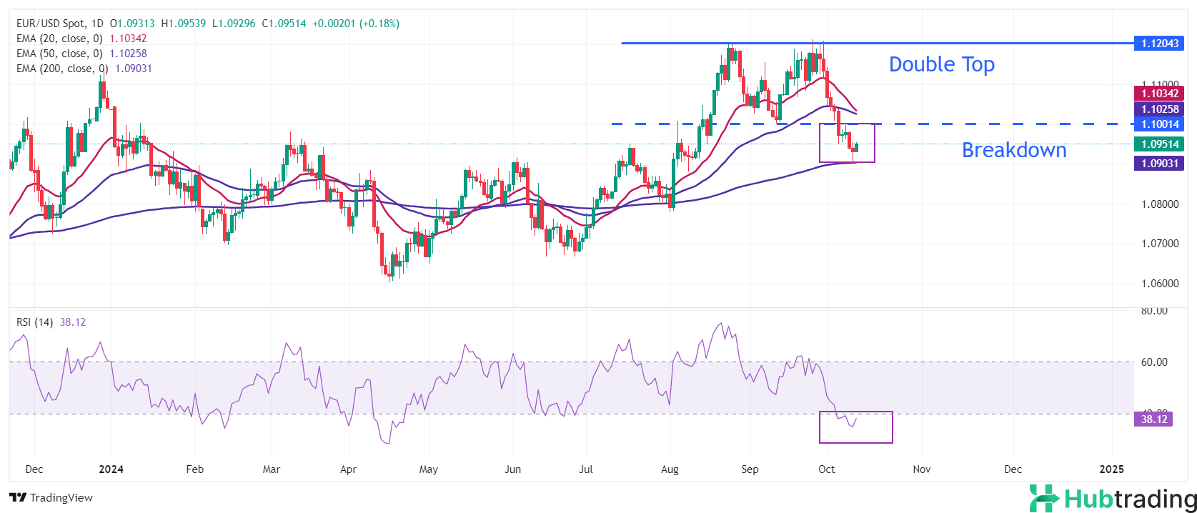 If EUR/USD decisively breaks below the 200-day EMA around 1.0900, it may find support near the significant round number of 1.0800. Conversely, resistance is expected at the September 11 low of 1.1000 and the 20-day EMA at 1.1090.