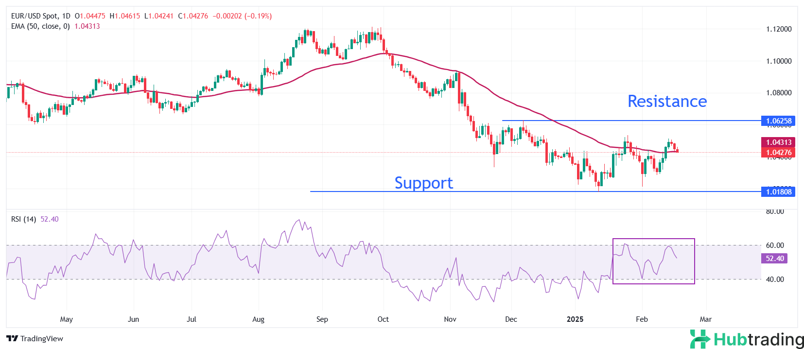 EUR/USD declines toward 1.0420 in early North American trading on Wednesday as the US Dollar (USD) gains momentum. The US Dollar Index (DXY) climbs near 107.20, driven by renewed fears over President Donald Trump’s tariff plans.