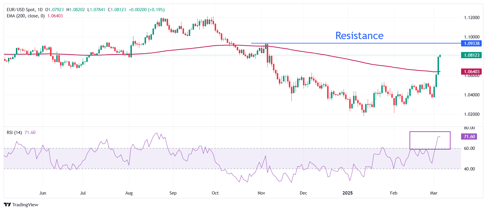 EUR/USD surged past 1.0800 after a strong breakout above the December 6 high of 1.0630 on Wednesday. The long-term outlook remains bullish as the pair holds above the 200-day Exponential Moving Average (EMA), currently near 1.0640.