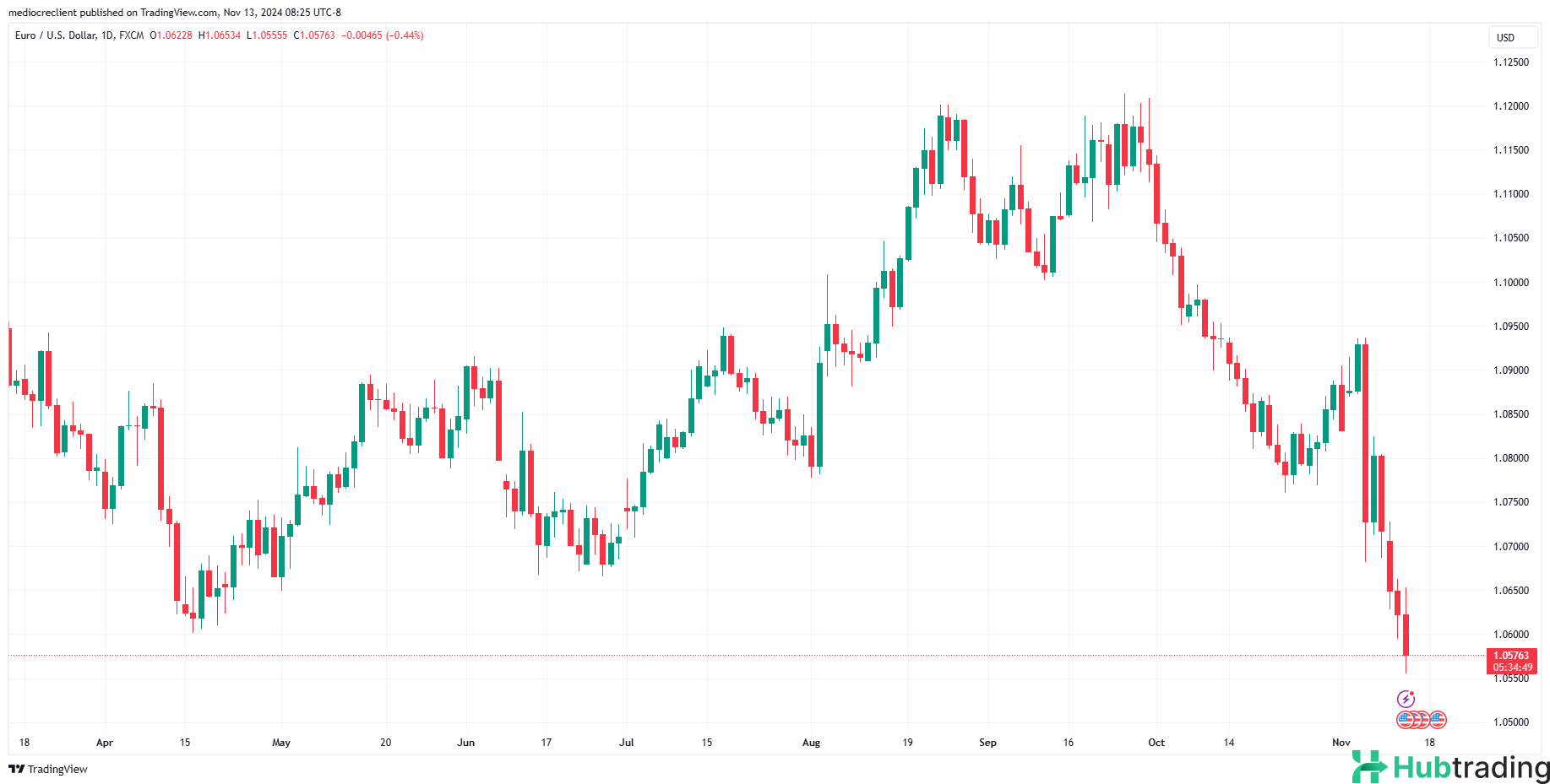 EUR/USD continued its decline on Wednesday, dropping to 1.0550 and only seeing a modest rebound from its 54-week lows following the release of the US Consumer Price Index (CPI) for October, which came in largely in line with market expectations. The Euro remains under pressure as investors struggle to find compelling reasons to buy the currency, leaving EUR/USD vulnerable to broader US Dollar flows.