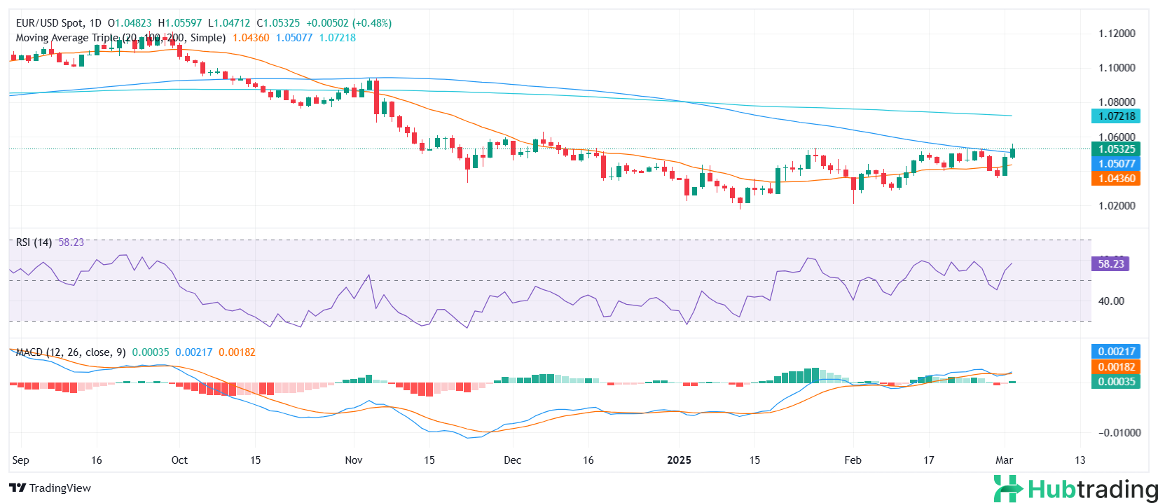 From a technical perspective, immediate resistance is seen near 1.0560, where sellers may attempt to limit further upside. A decisive break above this level could open the door for a move toward the 1.0600 psychological threshold. On the downside, initial support rests at 1.0480, with a drop below this level potentially triggering a pullback toward the 20-day SMA near 1.0450.
