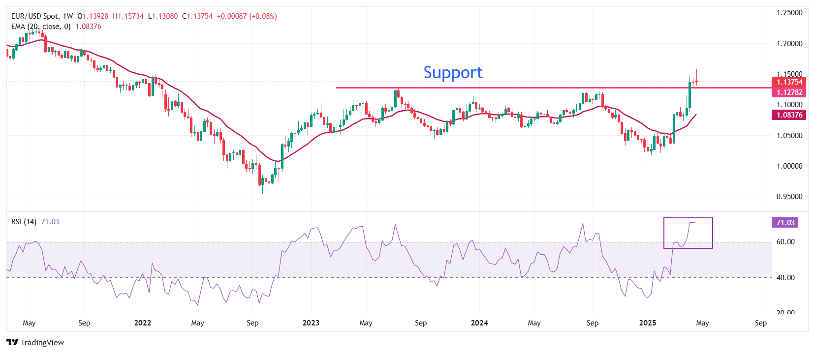 EUR/USD has found support near 1.1300 and rebounded to around 1.1385 during European trading hours on Thursday following a two-day correction. The pair is recovering as the Euro (EUR) strengthens, despite growing market expectations that the European Central Bank (ECB) may cut interest rates in its upcoming June policy meeting. These dovish expectations are fueled by ECB officials’ confidence that inflation will return to the bank’s 2% target within this year.