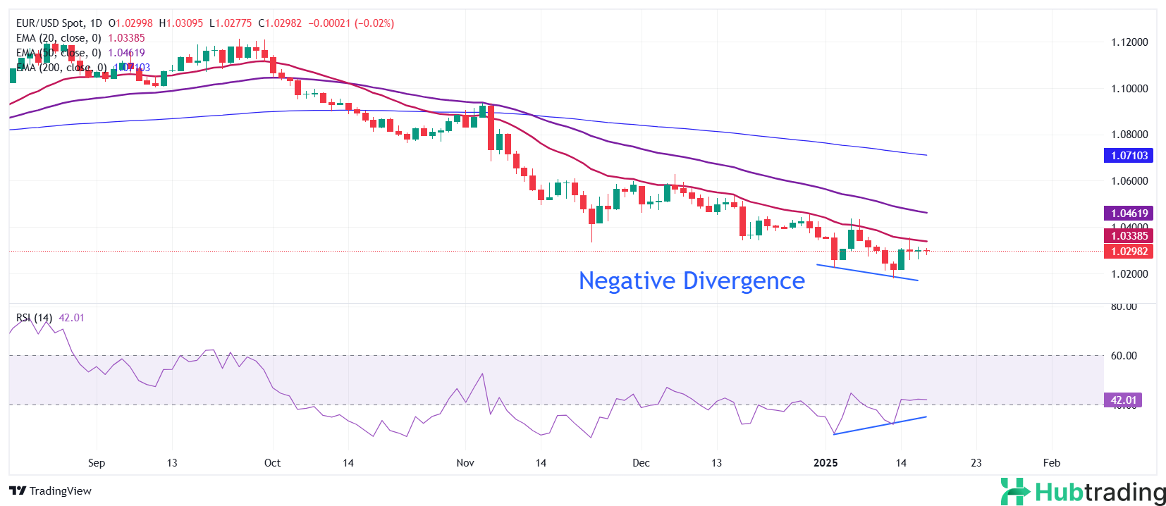 EUR/USD trades cautiously within a narrow range near the critical 1.0300 level during Friday’s European session. The currency pair remains confined to Thursday’s trading range as investors shift their attention to the inauguration of US President-elect Donald Trump on Monday.