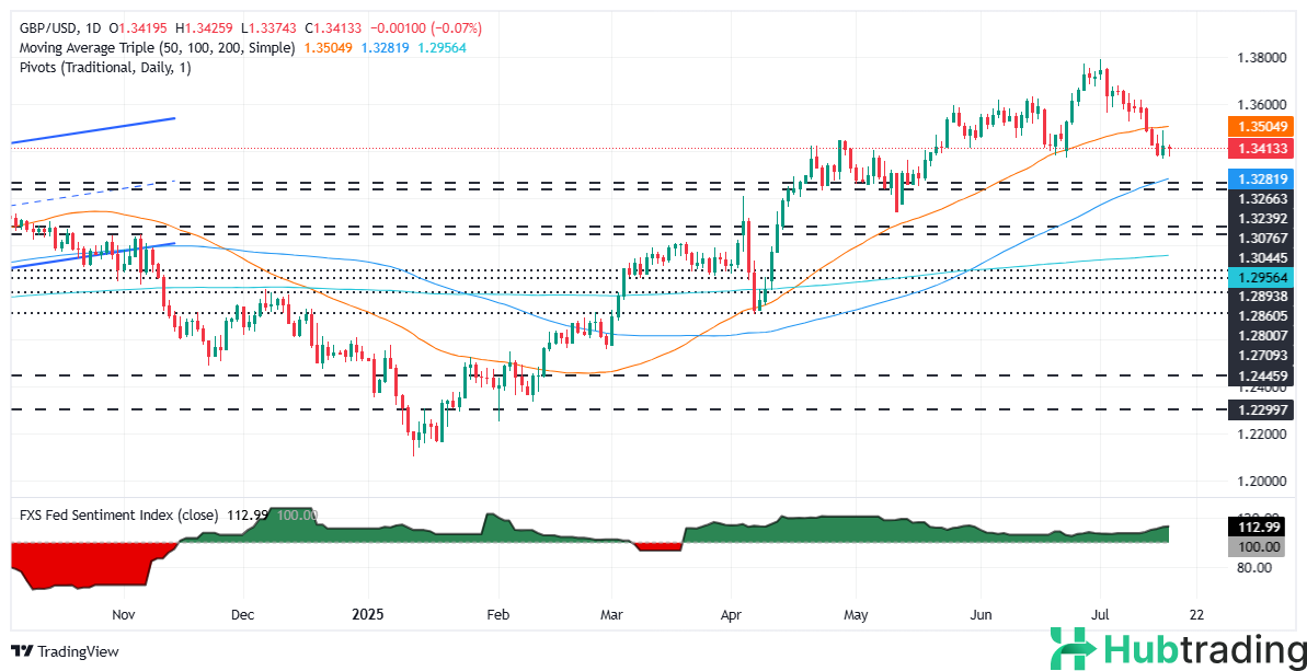 To shift momentum, bulls would need to reclaim the 50-day Simple Moving Average (SMA) at 1.3500. If the bearish pressure persists, the next downside targets include the July 17 low at 1.3373, followed by 1.3300 and the 100-day SMA at 1.3278.