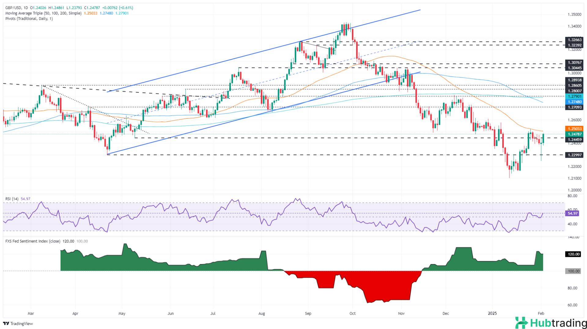 On the technical front, the outlook remains bearish unless buyers can propel the pair above key resistance levels. Specifically, GBP/USD must clear the 50-day Simple Moving Average (SMA) at 1.2503 and surpass the January 7 peak of 1.2576 to neutralize the current downside bias and shift momentum to the upside. The Relative Strength Index (RSI) suggests that buying strength is gathering in the short term. However, for bearish momentum to resume, the pair would need to fall below the February 3 high of 1.2436, which could pave the way for a decline toward the 1.2400 level. Should further weakness materialize, the next support to watch is the swing low from April 22, 2024, at 1.2299.