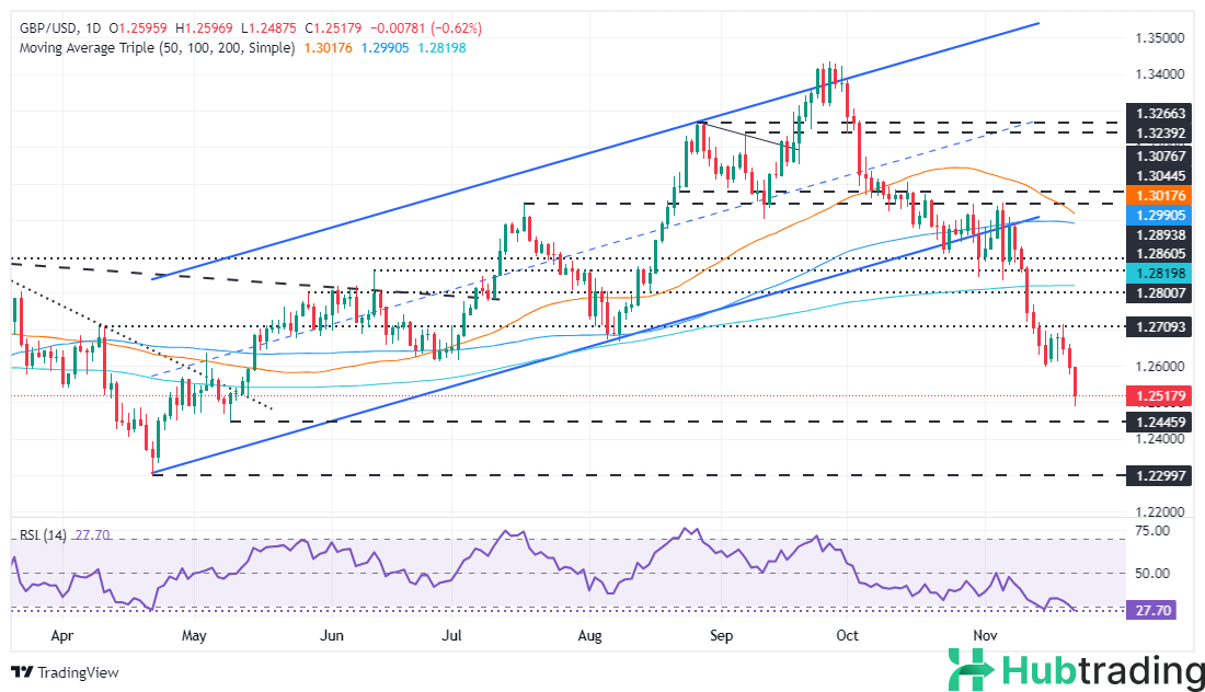 The Pound Sterling continues its downward trend against the US Dollar for the third consecutive day, falling 0.47% after disappointing UK Flash PMIs and Retail Sales data. This, combined with rising geopolitical tensions from the Russia-Ukraine and Middle East conflicts, has strengthened the US Dollar. As of writing, GBP/USD trades at 1.2529, after reaching a daily high of 1.2594.