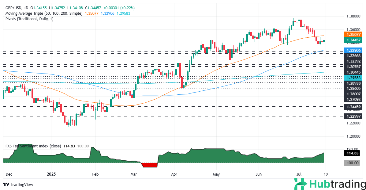 GBP/USD trades sideways with a slightly bullish bias, hovering near 1.3442. A breakout above the 50-day Simple Moving Average (SMA) at 1.3506 could open the door for further gains toward the 20-day SMA at 1.3577 and the psychological 1.3600 level.
