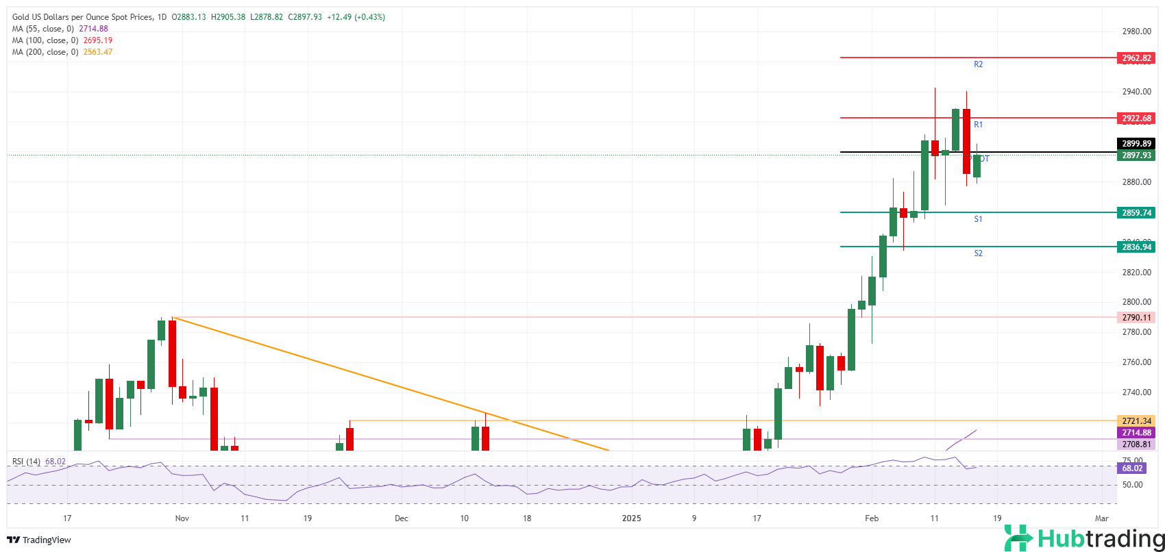 Gold is recovering and trading back above $2,900 after a nearly 1.5% drop on Friday. However, with US bond markets closed due to the President’s Day holiday, all eyes will be on news regarding Ukraine and potential tariff announcements.
