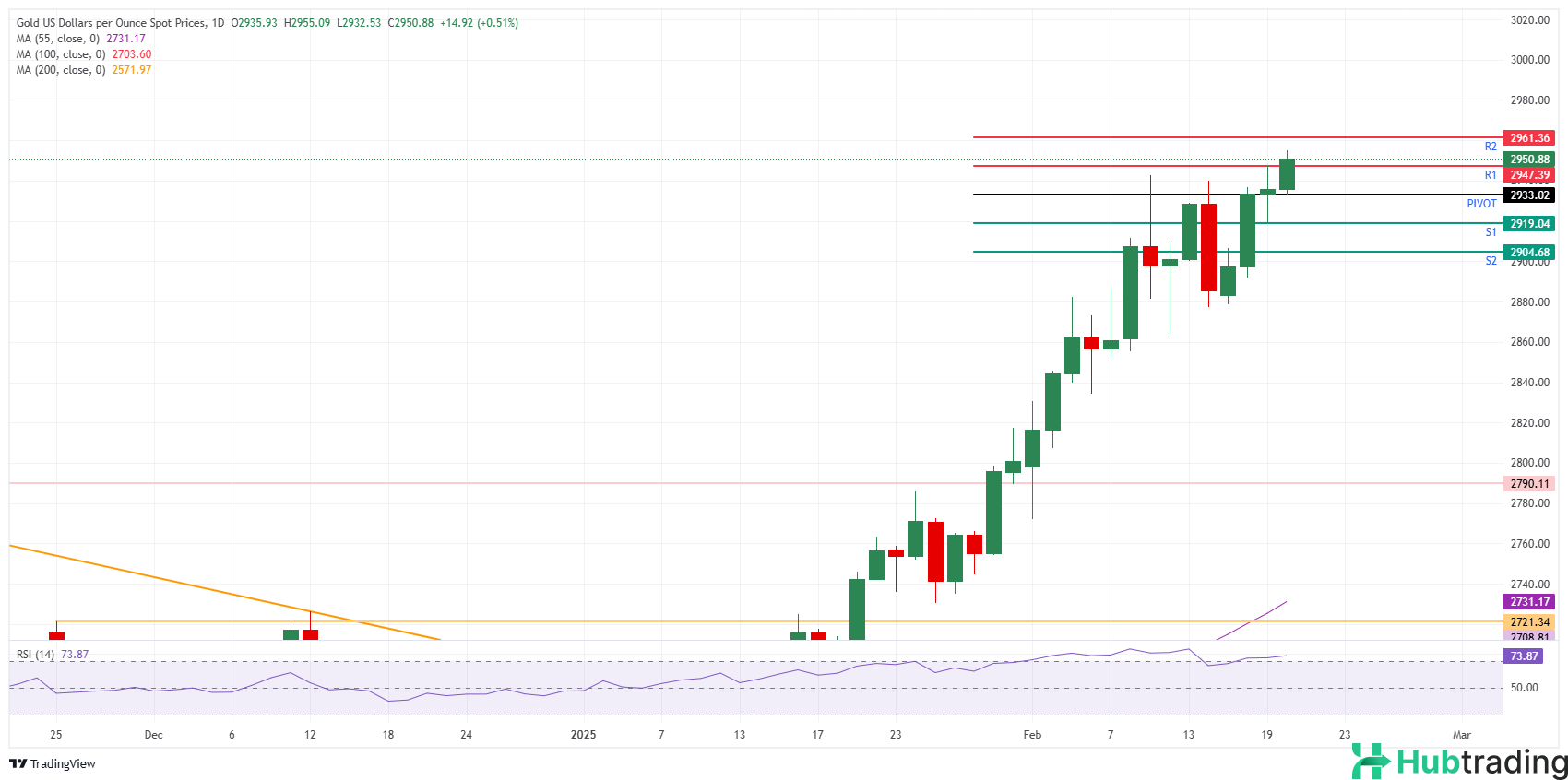 Gold (XAU/USD) hovers near another fresh all-time high, trading around $2,955 after an earlier surge on Thursday. The latest rally follows US President Donald Trump’s comments suggesting a potential trade deal with China while simultaneously escalating geopolitical tensions by blaming Ukraine for starting the war with Russia and hinting at repayment expectations for US financial aid.