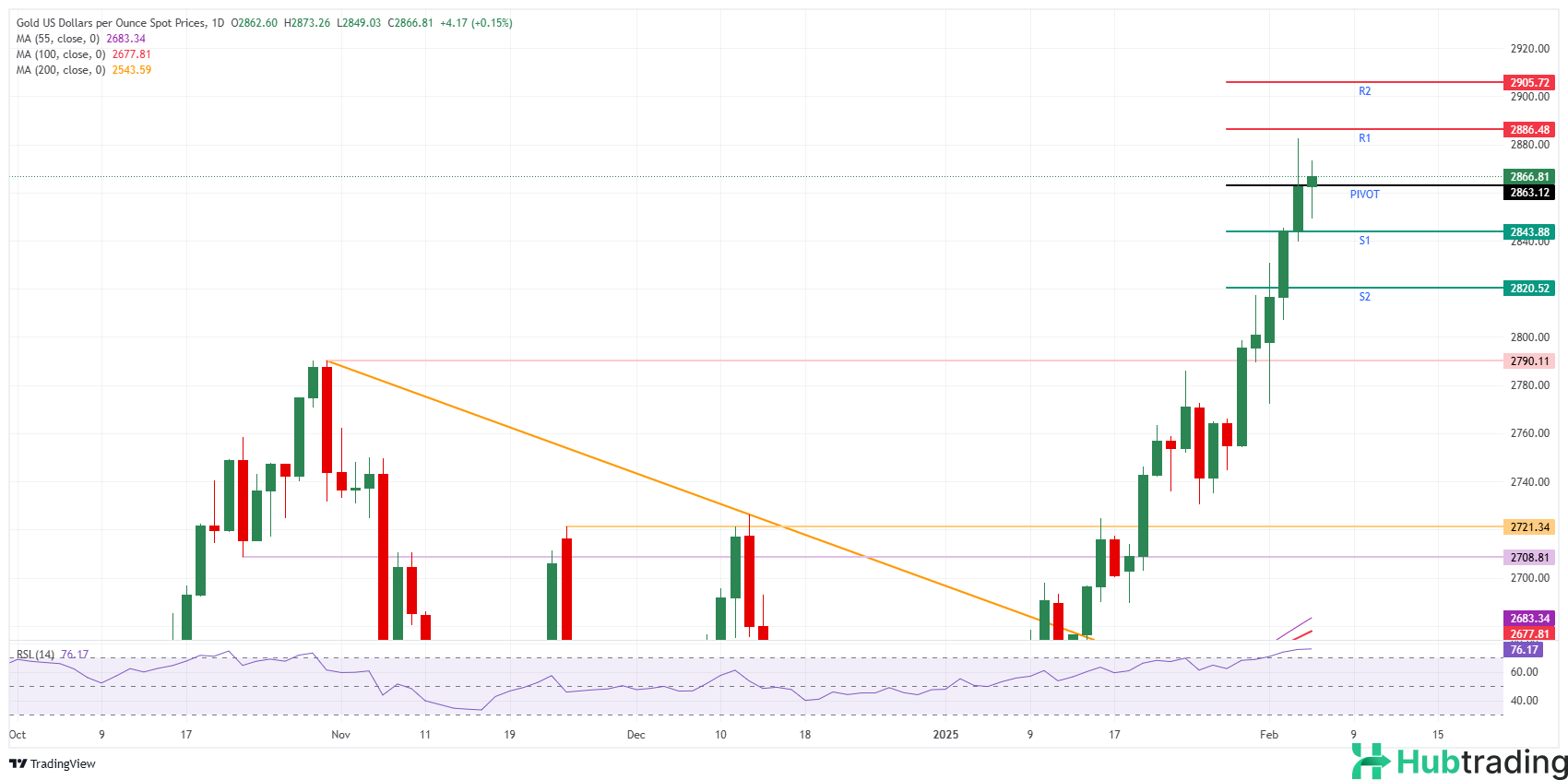 - Gold's all-time high stands at $2,882.35, reached on Wednesday.