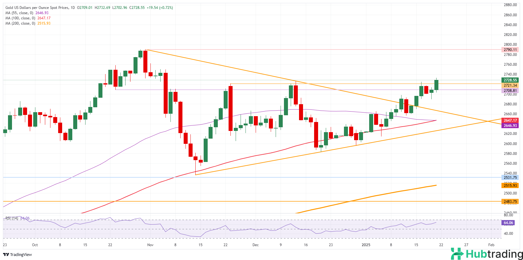 - Gold reaches a fresh two-month high at $2,732.70, approaching a key resistance zone near $2,790.