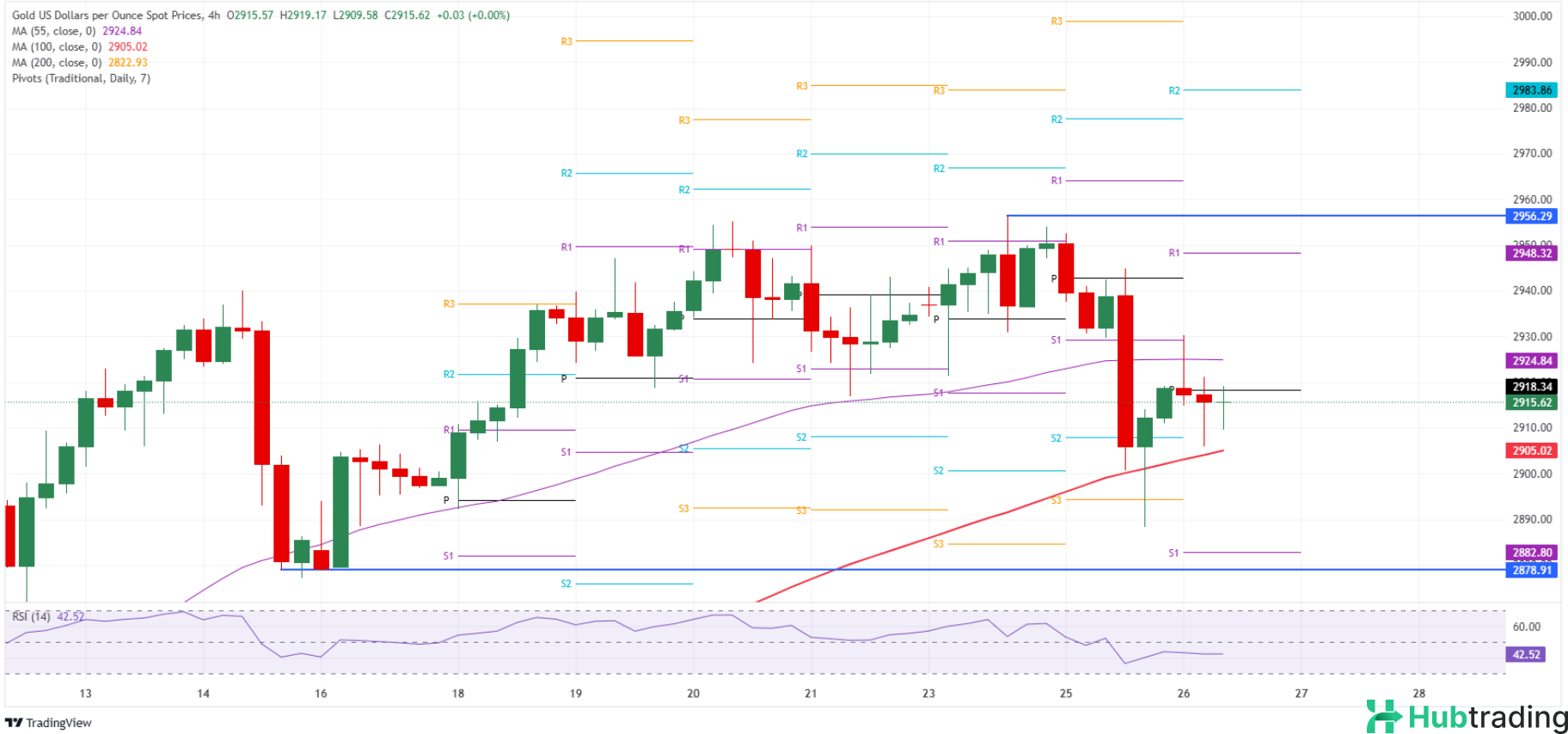 Gold remains below its daily Pivot Point of $2,918, suggesting a risk of further downside. The Relative Strength Index (RSI) on the 4-hour chart signals room for further losses, potentially dragging Gold to $2,880 if selling pressure intensifies.