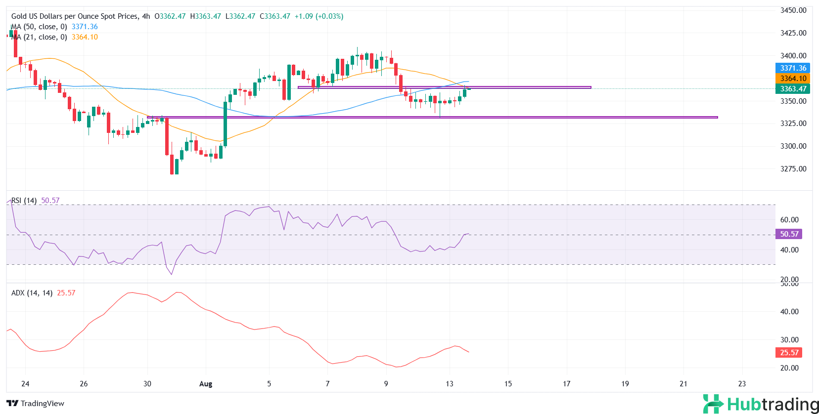 Gold (XAU/USD) is consolidating just above $3,350 in the American session, up 0.25%, after paring gains from an earlier peak near $3,370. The metal remains underpinned by a weaker US Dollar, following fresh US inflation data that bolstered expectations of a Federal Reserve interest rate cut at its September 16–17 meeting.
