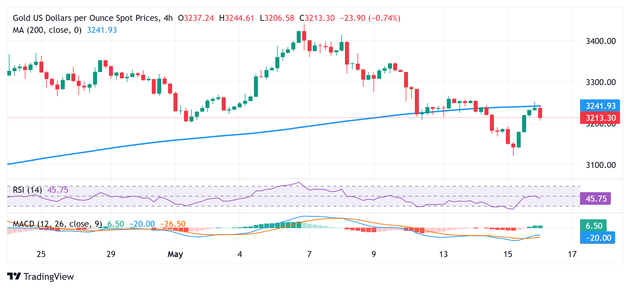 Gold price (XAU/USD) continues its steady intraday decline during the first half of the European session on Friday, sliding back below the $3,200 mark in the last hour. Renewed optimism over the US-China trade truce weakens demand for traditional safe-haven assets, preventing gold from building on the previous day’s strong recovery from the $3,120 area, marking a more than one-month low.