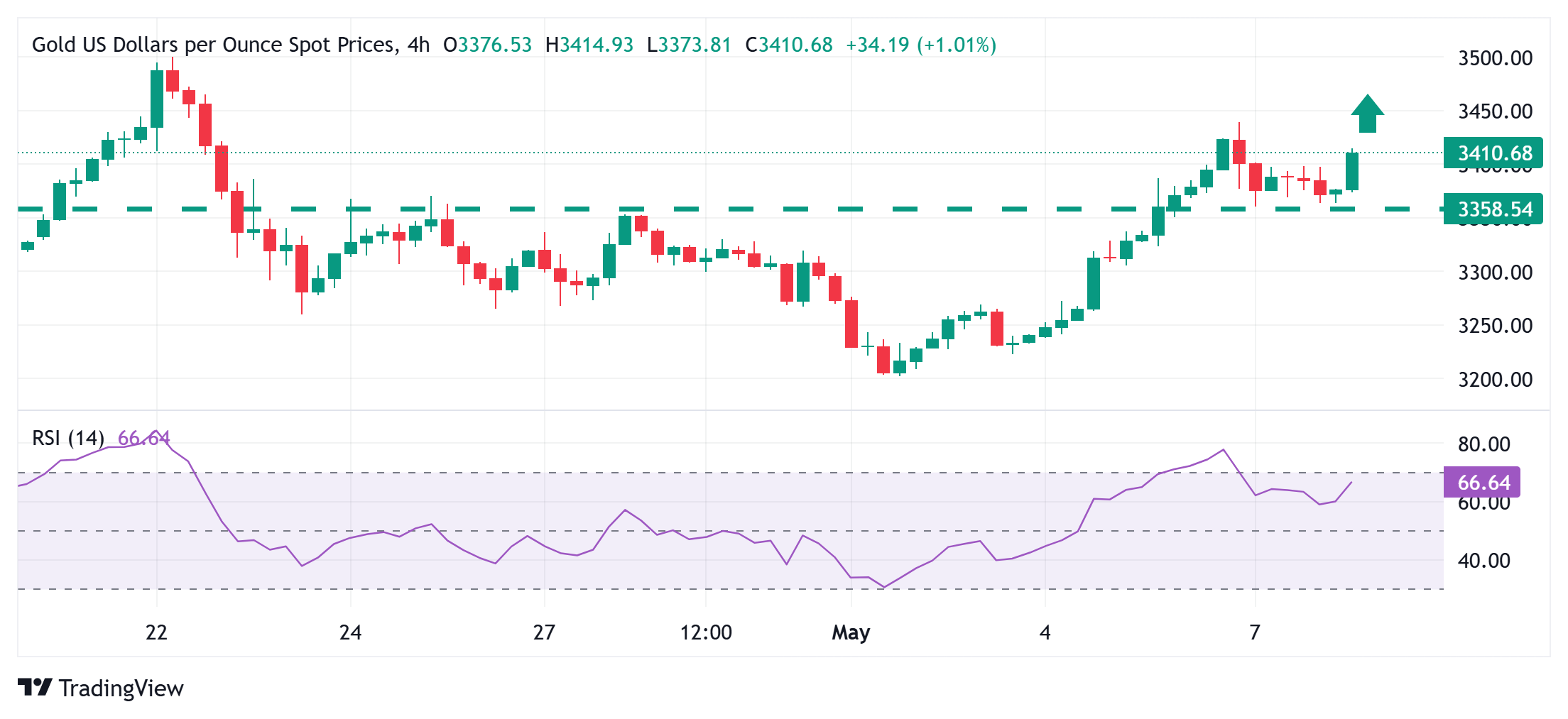 US President Donald Trump dampened expectations of a quick resolution to the US-China trade war, stating he is in no rush to sign any agreements. Despite this, ongoing geopolitical risks, including the Russia-Ukraine conflict, tensions in the Middle East, and military confrontations on the India-Pakistan border, could support Gold as a safe-haven asset. Traders remain cautious ahead of Trump’s press conference scheduled for 14:00 GMT.