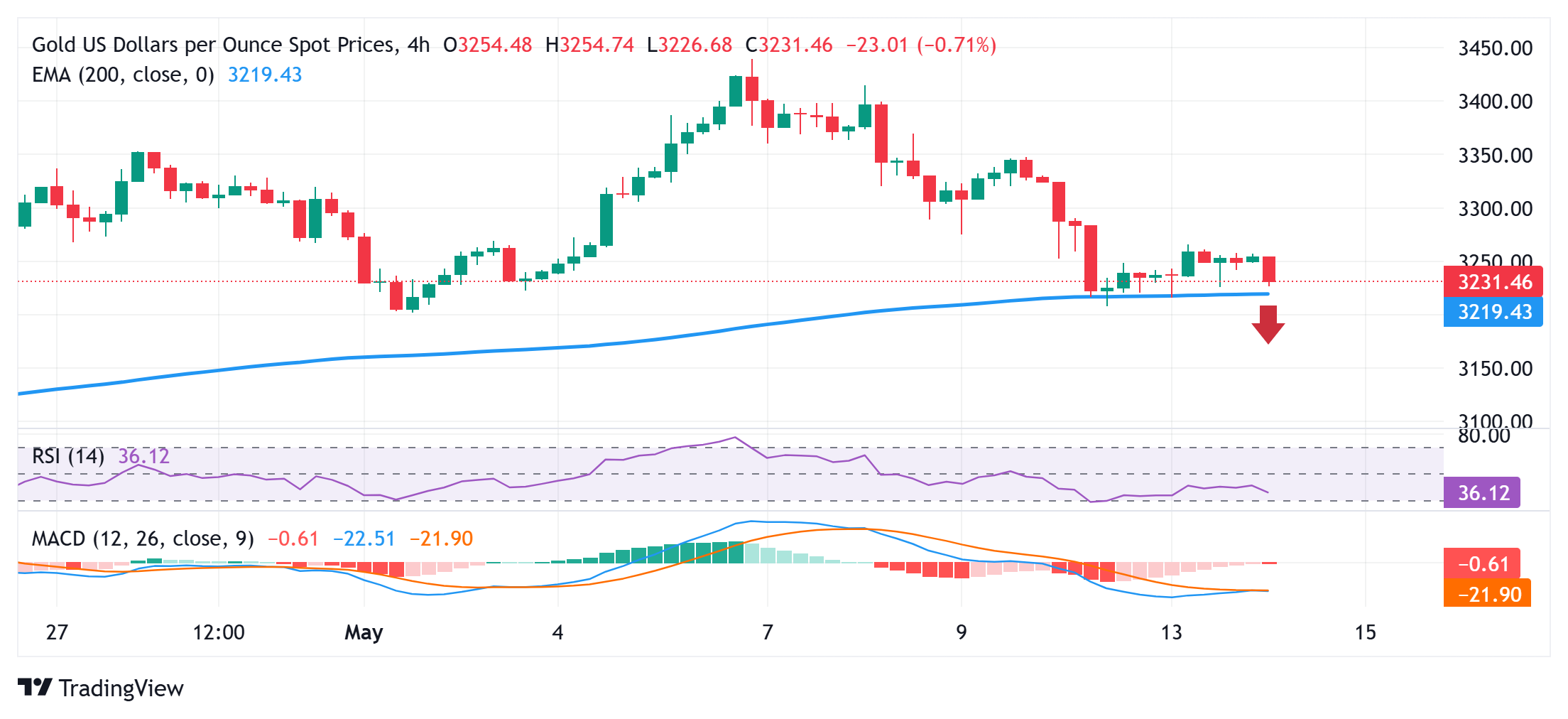 Gold price (XAU/USD) remains under modest intraday pressure but lacks strong bearish momentum, holding comfortably above the $3,200 level ahead of the European session on Wednesday. Market sentiment remains buoyed by optimism surrounding a de-escalation in the US-China trade conflict, undermining demand for the safe-haven precious metal.