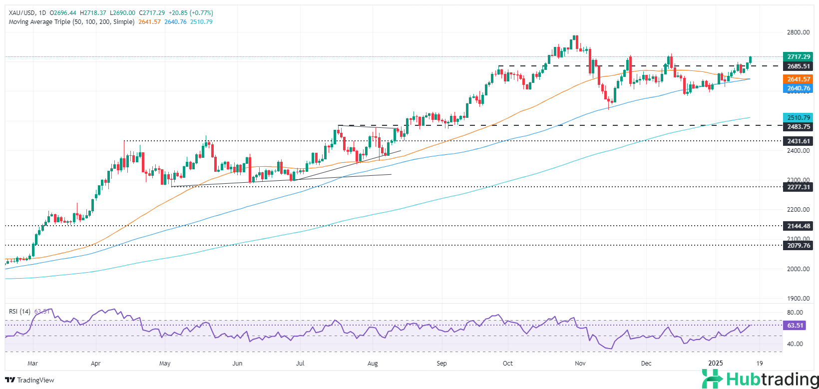 Gold’s uptrend is likely to persist, but buyers will face key resistance at $2,726, the December 12 high. A break above this level could target $2,750 and the all-time high of $2,790.
