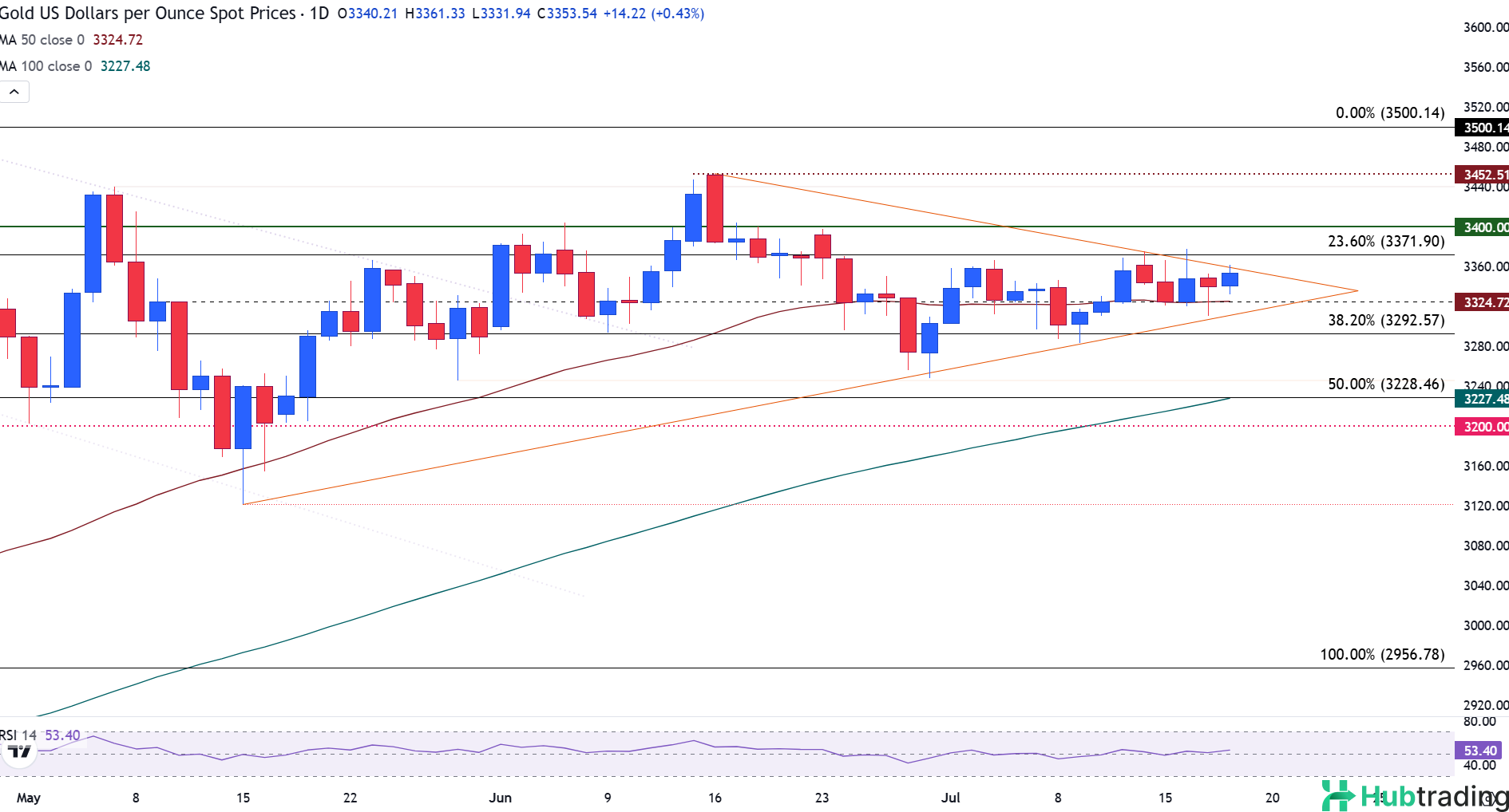 Gold Technical Outlook: XAU/USD Holds Steady Near $3,350 Within Triangle Formation