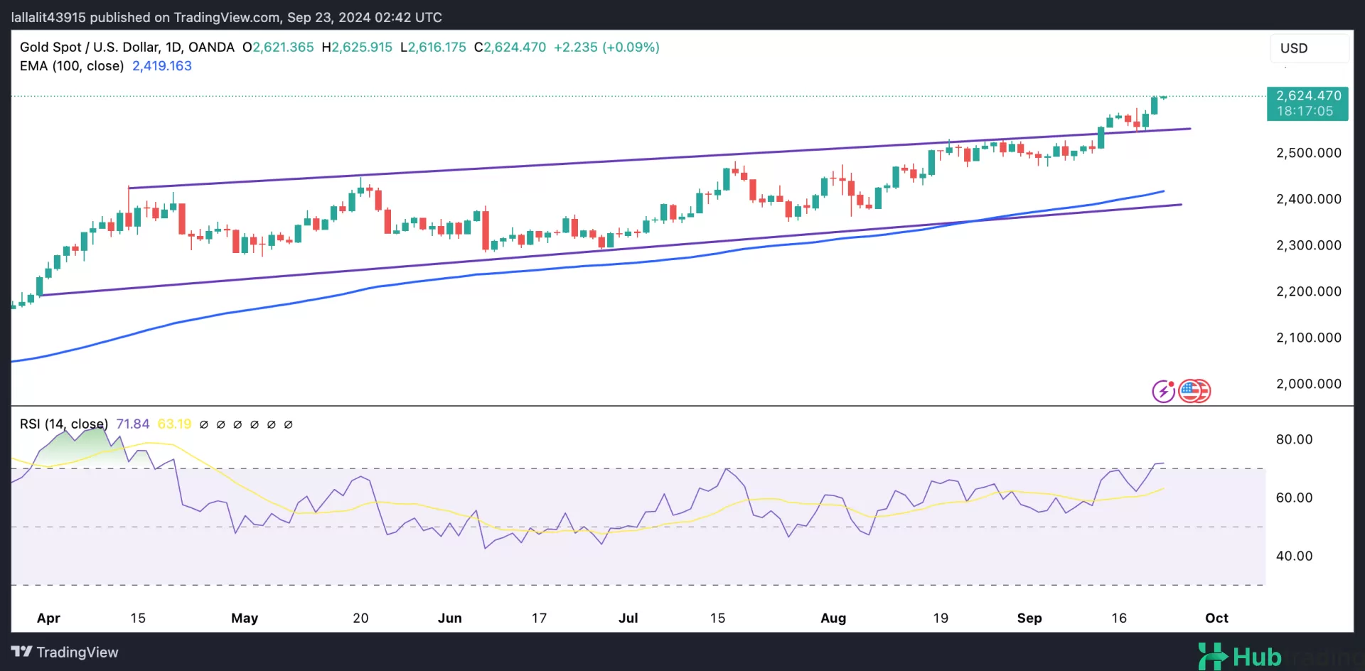 The yellow metal is approaching a major resistance level near the all-time high of $2,625. A decisive break above this threshold could open the path to the psychological level of $2,700.