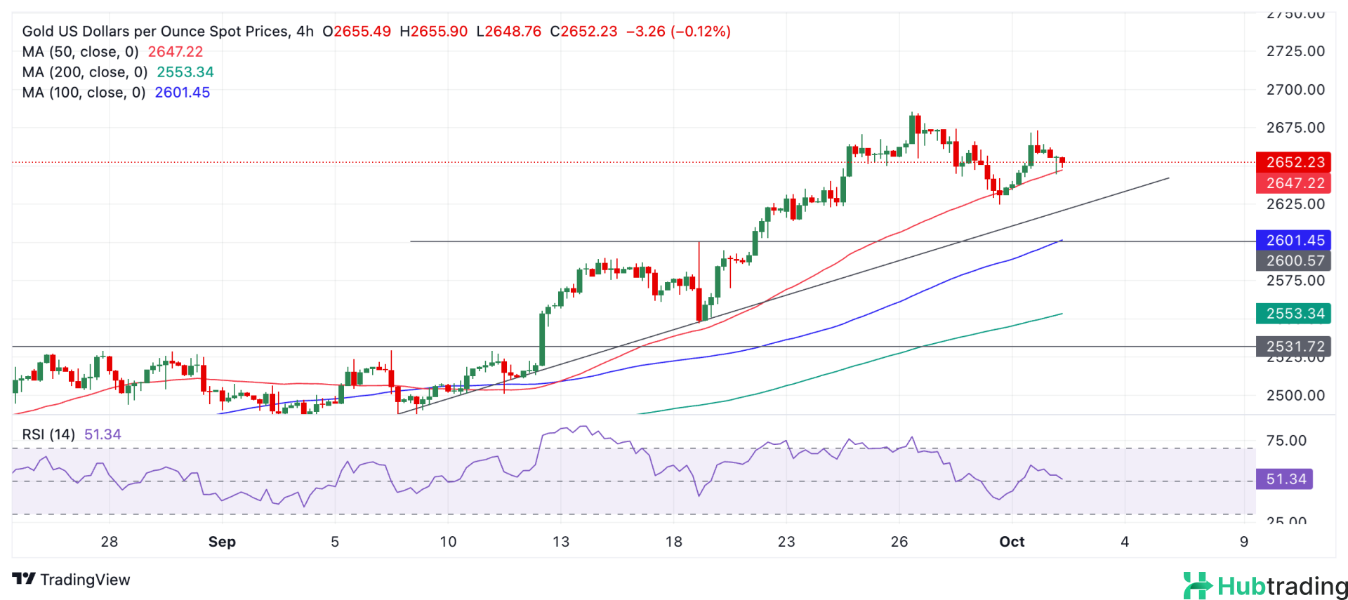 Gold has retraced to the 50-period Simple Moving Average (SMA) on the 4-hour chart for the second time this week. This correction follows Tuesday’s rebound from the $2,625 swing low.