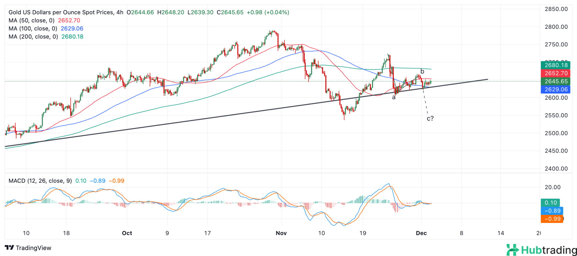 A decisive break below $2,605 (the November 26 low) would confirm this bearish move.