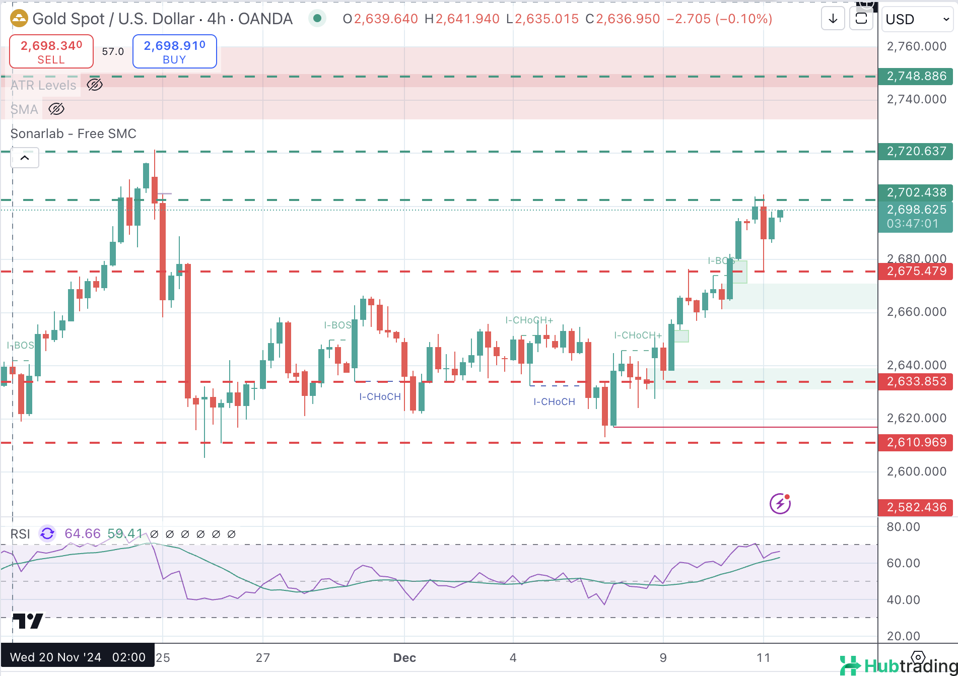 Above $2,700, key levels include the November 24 high at $2,720 and the cluster of November 4–6 highs near $2,750.