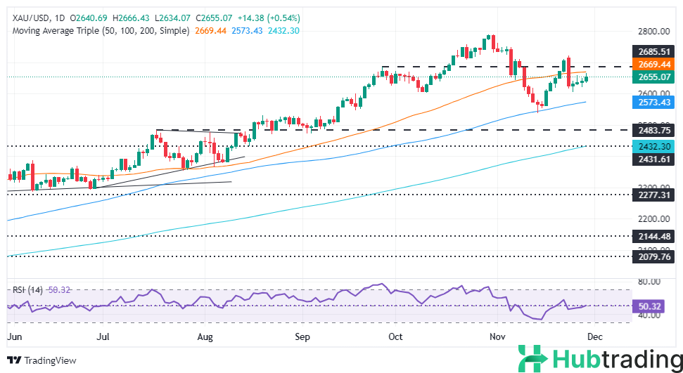 Conversely, a drop below $2,600 could lead to a retest of the 100-day SMA, with $2,536, the November 14 swing low, serving as a key support level.
