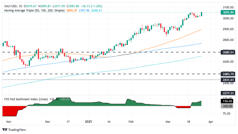 Key resistance levels for XAU/USD are at $3,059, with a break above this level paving the way for a move toward $3,100. On the downside, initial support lies at $3,050, followed by $3,000 and the February 24 swing high at $2,956. A further decline could see gold testing $2,900 and the 50-day Simple Moving Average (SMA) at $2,887.