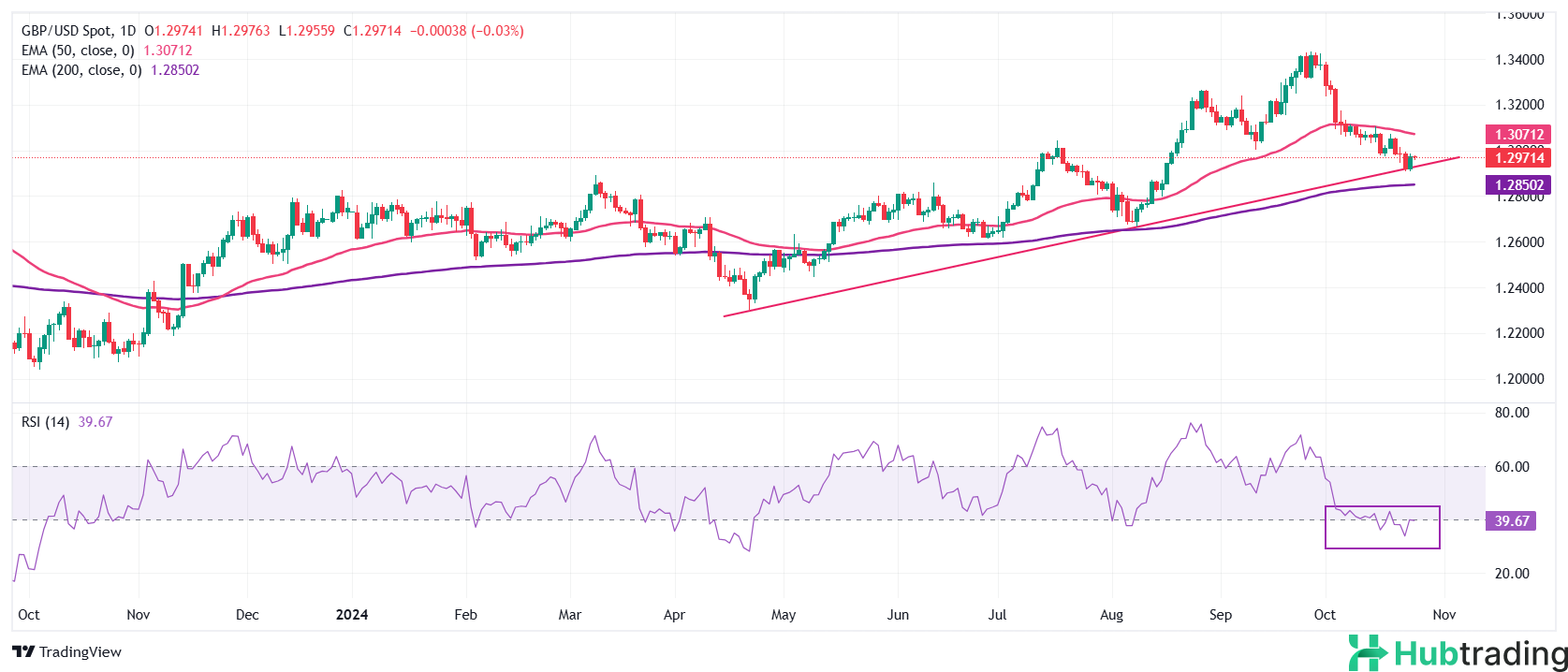 The Pound Sterling is trading near 1.3000 against the US Dollar, maintaining momentum from Thursday’s rebound after finding buying interest near the lower boundary of a Rising Channel formation around 1.2900 on the daily timeframe.