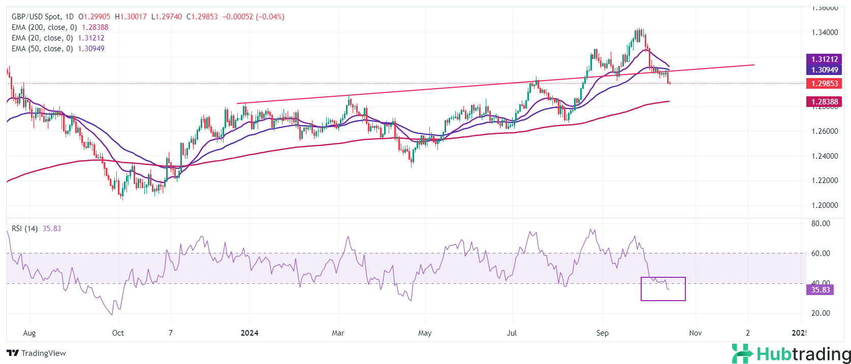 - The Pound Sterling bears are momentarily pausing after dipping to around 1.2970 against the US Dollar in Thursday’s London session. However, the outlook for the GBP/USD pair remains precarious as the US Dollar continues to strengthen, with traders reevaluating expectations of significant Federal Reserve (Fed) rate cuts in November.