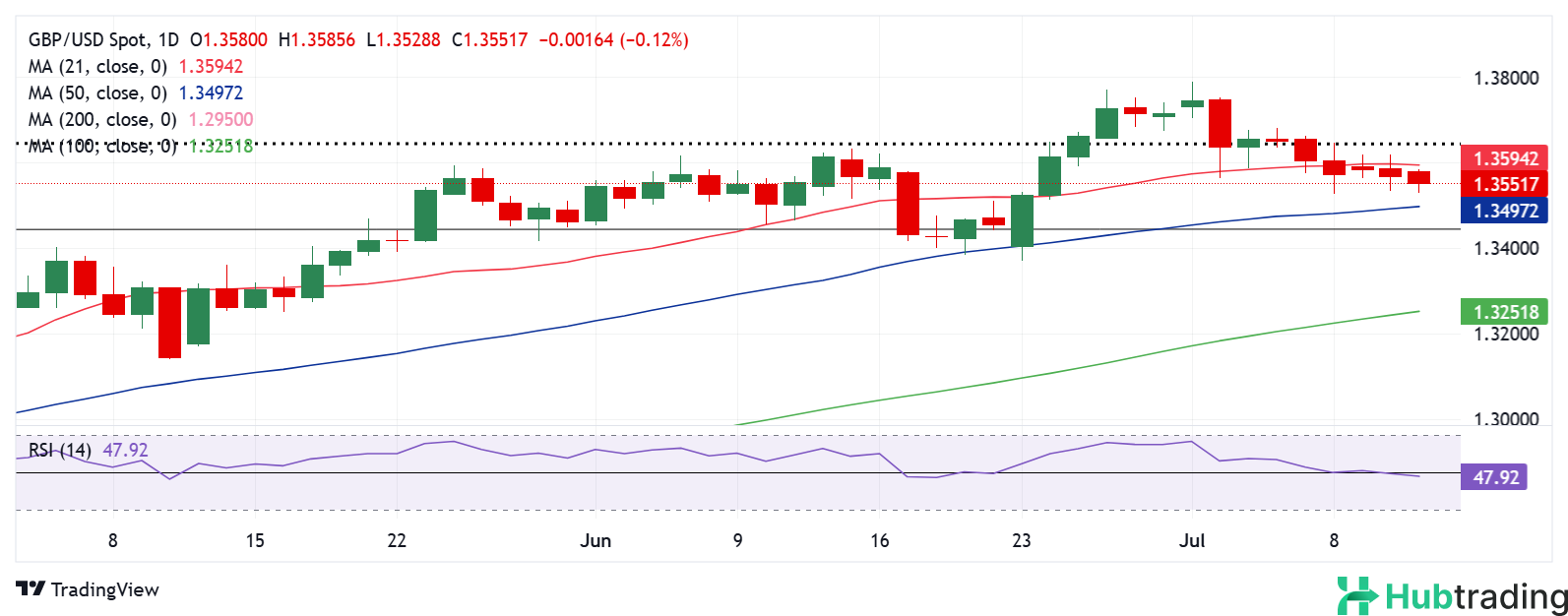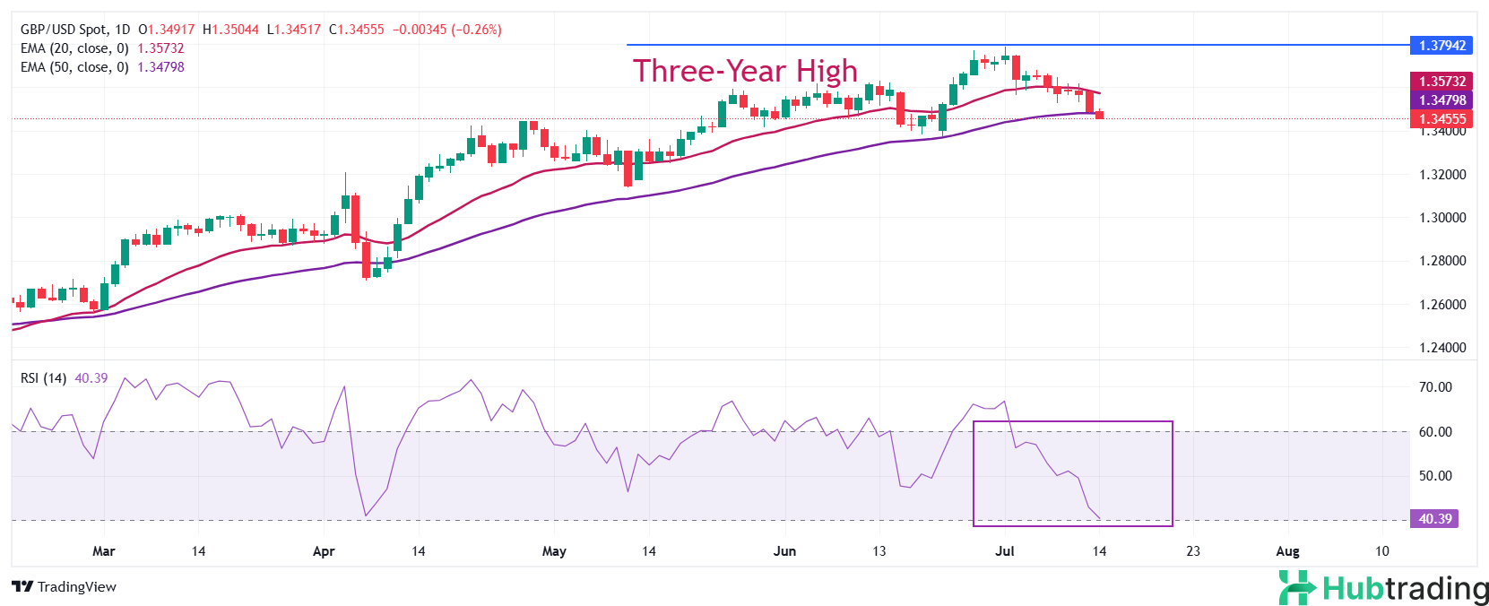 The Pound Sterling (GBP) declined sharply against the US Dollar (USD) on Monday, falling toward 1.3450 during the European session—its lowest level in three weeks. The GBP/USD pair came under renewed pressure as investors shied away from risk-sensitive assets, reacting to growing market anxiety over escalating trade tensions between the United States and the European Union.
