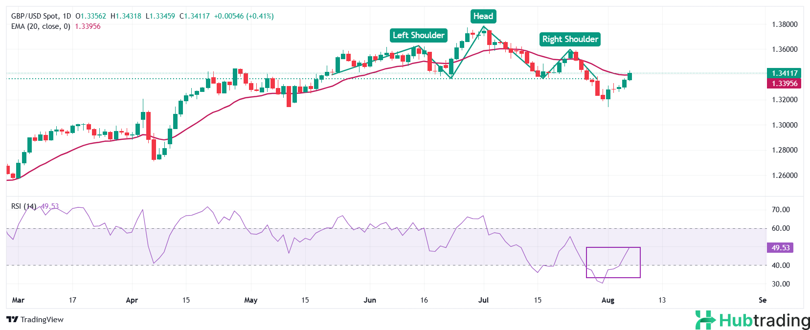 Technically, the Pound Sterling is extending its recovery, surging to the 1.3430 mark and reclaiming levels above the 20-day Exponential Moving Average (EMA), which sits around 1.3390. Notably, GBP/USD has also risen above the neckline of a bearish Head and Shoulders (H&S) pattern near 1.3376, invalidating the breakdown for now.