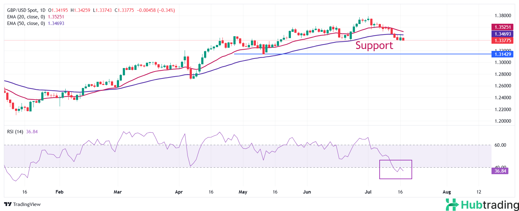 - The Pound Sterling pared some of its early losses on Thursday but remained down 0.13% against the US Dollar, with the GBP/USD pair hovering near 1.3400 after bouncing off an almost two-month low of 1.3370. The British currency remains under pressure as the US Dollar strengthens amid political and economic developments in the United States.