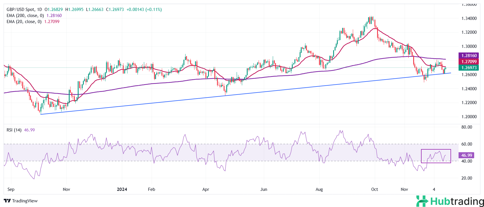 The Pound Sterling continues to trade near the 20-day Exponential Moving Average (EMA) around 1.2815 against the US Dollar (USD). The GBP/USD pair bounced higher after finding support near the upward-sloping trendline around 1.2600, which is drawn from the October 2023 low of approximately 1.2035.