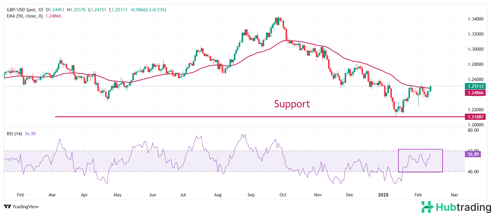 The Pound Sterling surges near 1.2500 against the USD, revisiting the 50-day Exponential Moving Average (EMA) after a volatile session. A daily close above the 50-day EMA would suggest a shift away from the recent bearish trend.