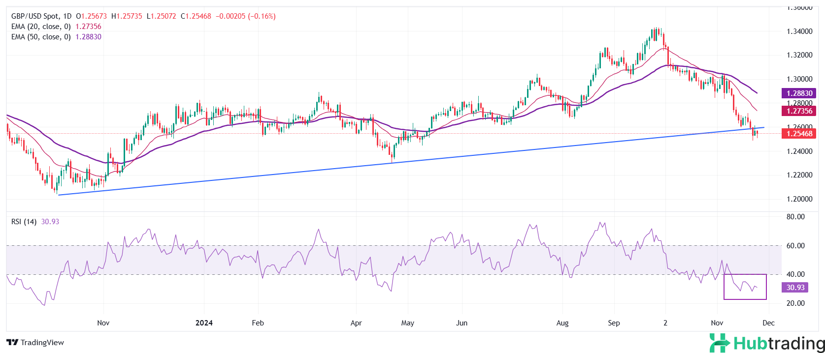 The US Dollar faced significant selling pressure at the start of the week, which helped GBP/USD gain bullish momentum. Markets were buoyed by the news of Donald Trump appointing fund manager Scott Bessent as US Treasury Secretary, alleviating concerns about unorthodox fiscal policies. However, sentiment turned cautious later in the day after Trump announced plans to impose a 25% tax on imports from Canada and Mexico, along with a 10% tariff on Chinese goods.