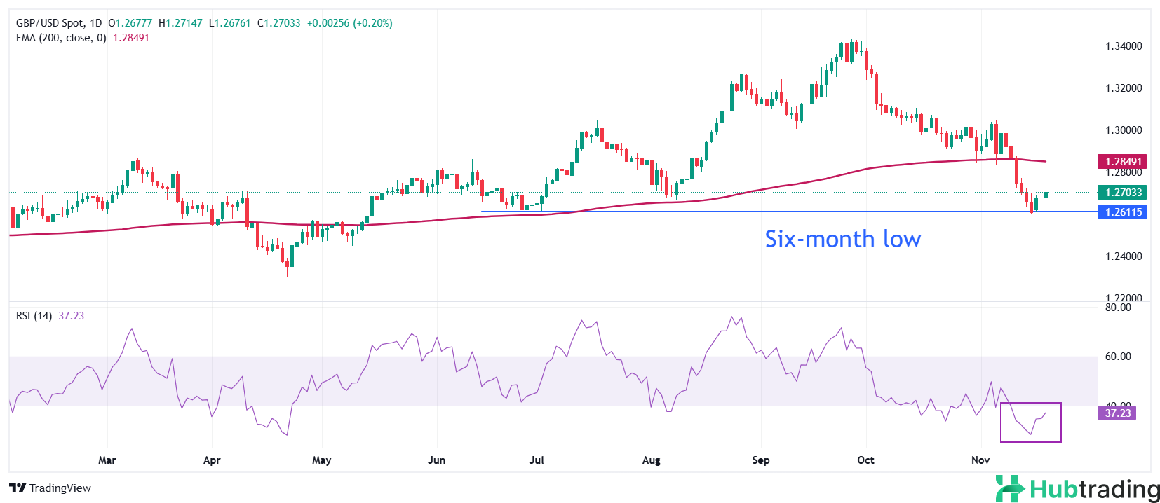 The Pound Sterling has risen above the key resistance level of 1.2700 against the US Dollar. The GBP/USD pair broke out of a three-day trading range between 1.2600 and 1.2700, pushing higher. If the recovery holds, the pair could extend its gains toward 1.2800. On the downside, the six-month low at 1.2600 remains a critical support level.