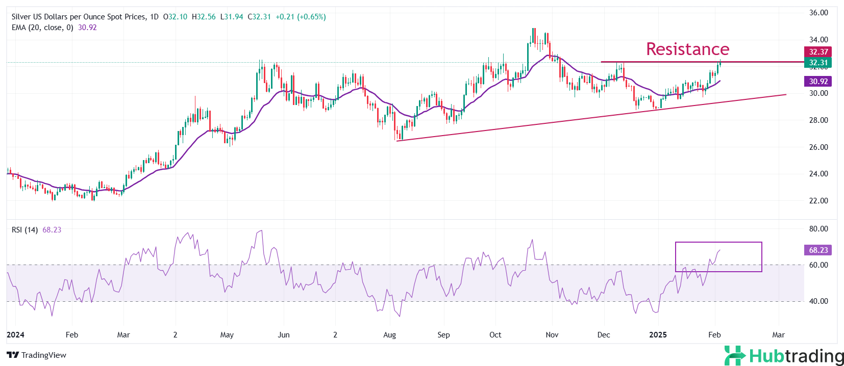 Investor sentiment for silver is also being tempered by diminishing fears of an all-out global trade war. Market participants expect trade tensions to remain primarily between the US and China, particularly after President Trump suspended plans to impose 25% tariffs on Canada and Mexico - moves seen as strategic negotiation tactics. Although 10% tariffs on China are set to take effect in February, China has already imposed retaliatory levies on various US exports.