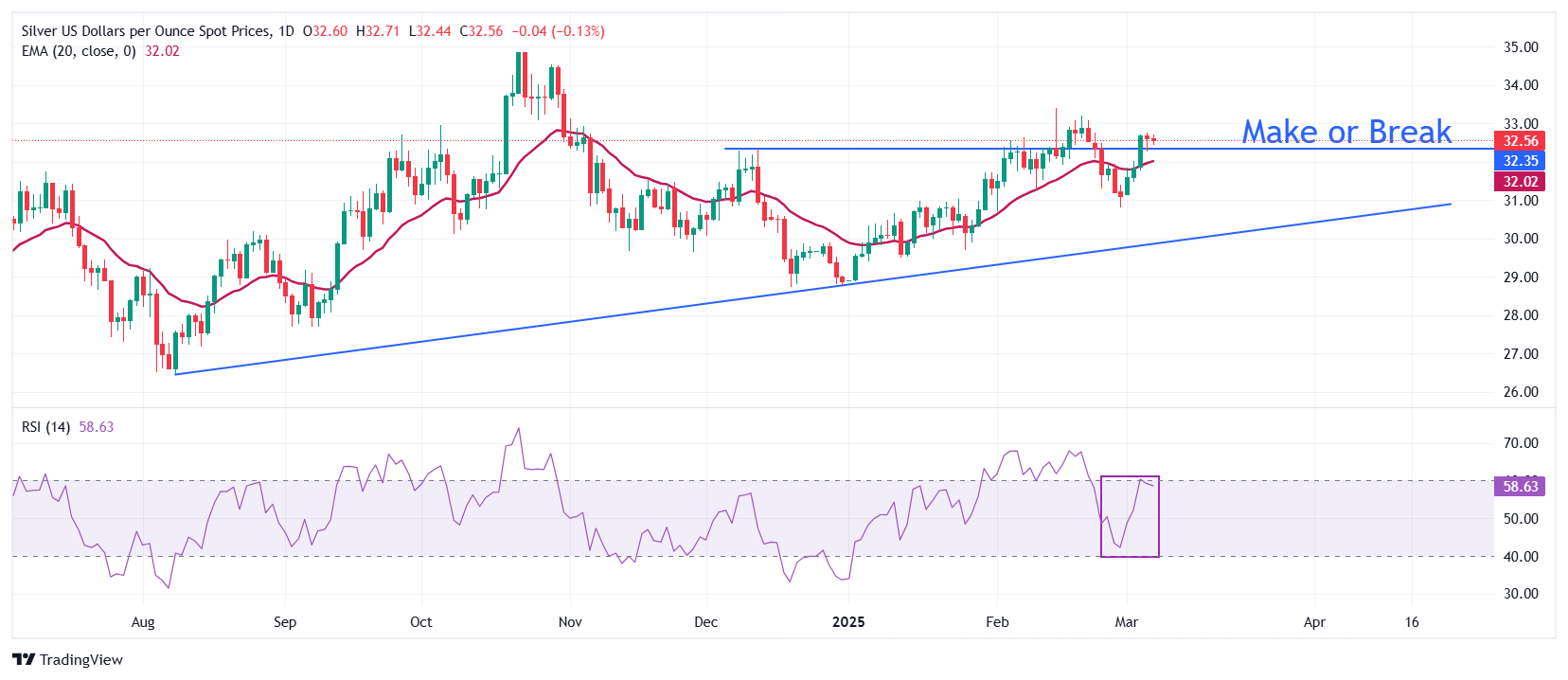 - Silver hovers near $32.70 as markets await the US NFP data for February.