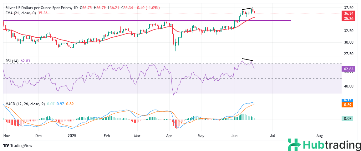 On the upside, if bulls reclaim control and push XAG/USD above $36.50, a retest of the $37.30 high is possible. A sustained break above that could clear the way for a move toward the $38.00 handle, assuming momentum revives.