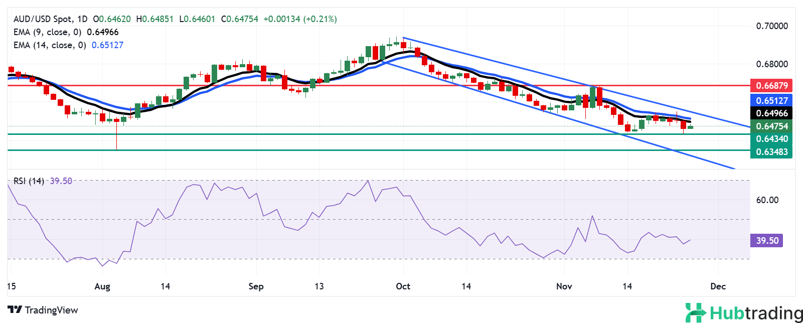 - The Australian Dollar (AUD) receives support from hawkish sentiment surrounding the Reserve Bank of Australia (RBA) as market participants focus on upcoming interest rate moves. The latest Federal Open Market Committee (FOMC) Meeting Minutes from November 7 show that US policymakers are taking a cautious approach to rate cuts, noting easing inflation and a strong labor market.